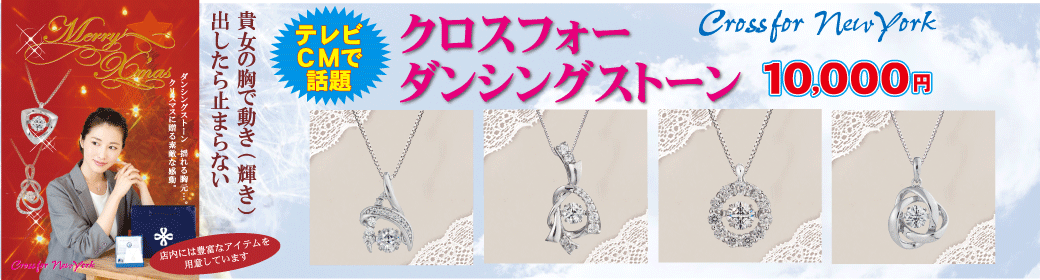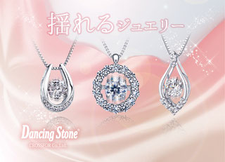 TVCM公開中!貴方の胸で躍る「ダンシングストーン」ネックレス。はんこ倶楽部松山朝生田店で取り扱い中!店内に多数陳列しています。